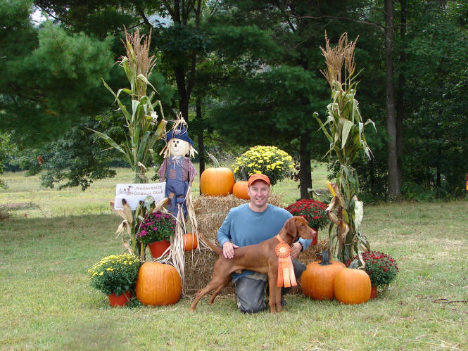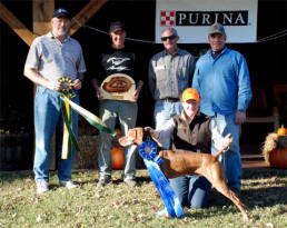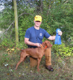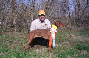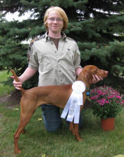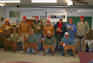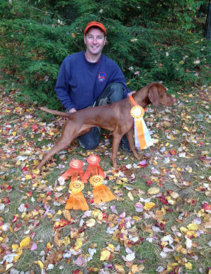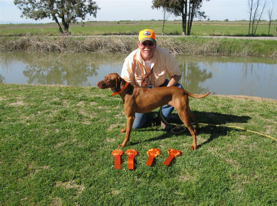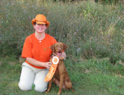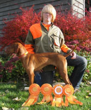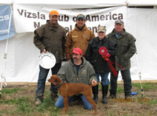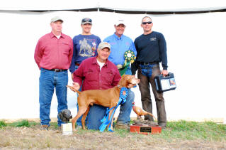 Donnor (pictured below)wins Derby stake at Vizsla Club of Eastern Iowa and his sister Ch. Zeeva, JH was third in the same stake. Later Zeeva won the Amateur Walking Derby stake. (Oct. 2010).