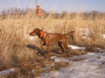 | "Colt" owned by Sem and Kayte Dieterich in Connecticut earned a 2nd place in the Open Derby at the Ct. Valley Vizsla Club's field trial Dec. 3rd. This was Colt's first field trial and he's only 8 months old. Colt is out of Ch. Zeeva, JH and 3xNGDC, 2xNAFC, NVA-NFC, MVSDC, DC/AFC Crimson's Twenty Gauge Ruger, SH, CGC. |