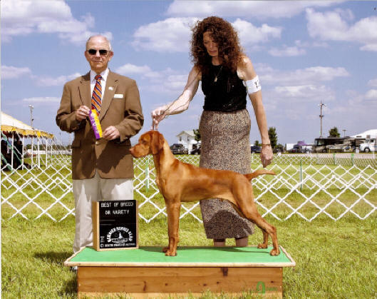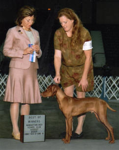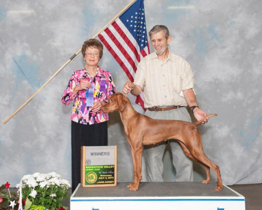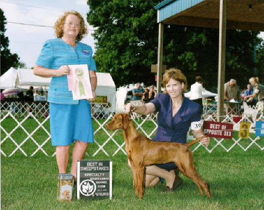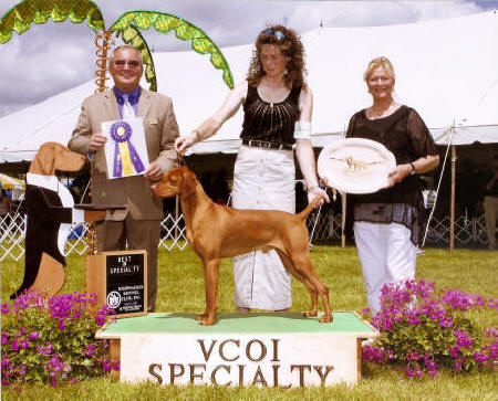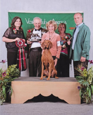 Vizsla Club's Specialty Show. Dam: Shiloh's Firecracker Jane, JH Sire: FC/AFC Raany, SH Congratulations Gary and Zak. Now for that field title! |