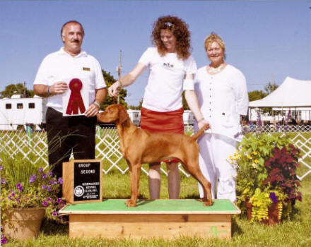 | Spike's Group 2 photo, July 17, 2011 from VCOI Specialty Show and Kishwaukee All Breed Dog Show. This is not our "official" show photo, but will work in the meantime. Judge is Sam Houston McDonald, Handler Chris Jones, and owner Linda Busch |