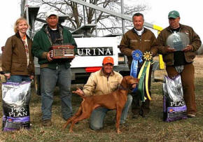 Vizsla Club of America Walking Gun Dog Championship - March 2012, Georgia. "Kinzie" owned by Jody and Chet Beckley from Coby, Kansas won the